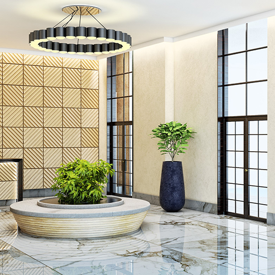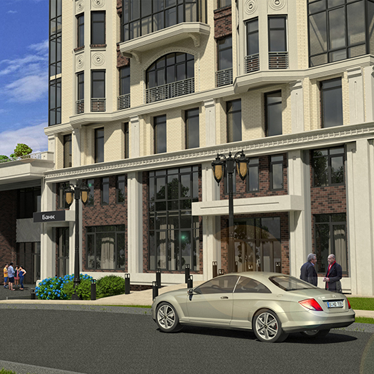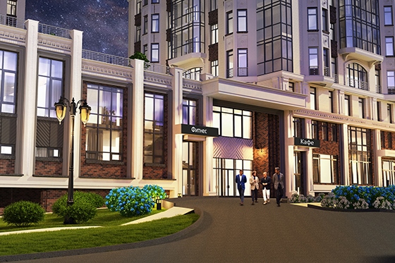 со стороны улицы Максима Горького.В элегантном холле жильцов дома и их гостей в любое время суток встретит приветливый консьерж.